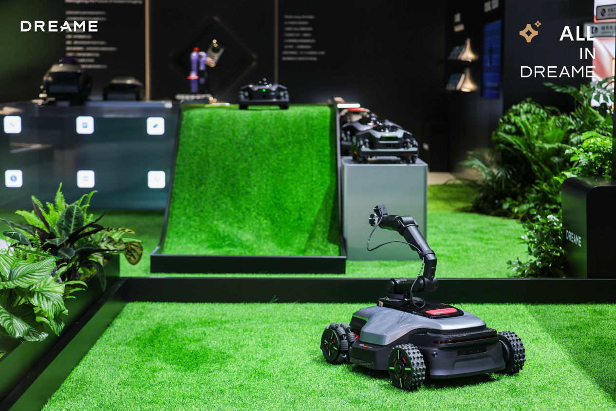 更令人瞩目的是追觅首款具身智能割草机器人APEX,它标志着庭院机器人从单一功能设备向“智能庭院管家”的进化。通过拓展机械臂,APEX可自主完成落叶清扫、垃圾倾倒、玩具归位,甚至支持自动浇水、果实采摘,并能与宠物、儿童互动,赋予科技以情感陪伴价值。
